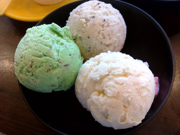 由上到下順時針的口味是瑞士巧克力、薄荷巧克力、香草!